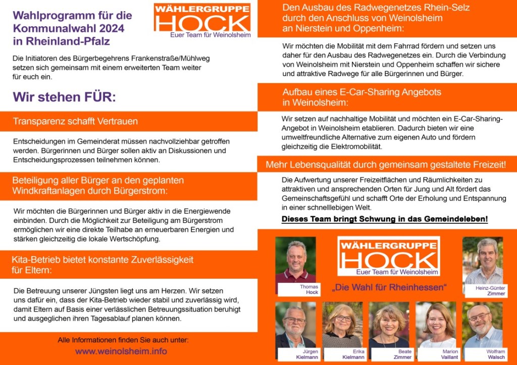 Am 09. Juni 2024 zur Kommunalwahl Rheinlad-Pfalz, die Wählergruppe HOCK wählen!